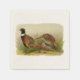 Coloured Drawing of a Ring Necked Pheasant rooster looking over his hen while she pecks for seeds in the clearing of a grass filled prairie. The Rooster is a rainbow of colours including green, yellow, oranges, blues, browns and whites. A pretty Upland Game bird.