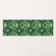 A pattern of intricate, green and gold circular yoga mat