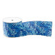 Ribbon in a pattern of stylised, seaweed-inspired fronds in shades of icy blue, gracefully intertwining against a rich cobalt background, for a dynamic, marine-themed design