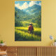 This stunning piece captures the timeless beauty of Indonesian life. The artwork features a farmer in a traditional conical hat, overseeing his meticulously crafted rice terraces nestled in a valley. With its soft, painterly style, the image highlights the deep connection between the people and the land, offering a glimpse into a rich cultural heritage and a breathtaking scenic view.