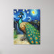 A Peacock in The Starry Night Canvas Print