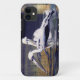 In the original photograph by MaeFlowers on this iPhone 11 Case, we see two Brown Pelicans in the water of a canal. The bird in the foreground is taking off, his head stretched outward, his wings a blur at the sides, and his feet extended backwards as they splash the water. The second pelican, still sitting in the water, seems to be saying to the first bird, Go for it! The background of the photo shows the wall of the canal at the top, reflected in shades of golden brown on the water, blending into greens and blues with a reflection of the flying pelican in the ripples. These wild birds are out exploring.