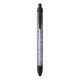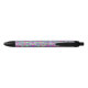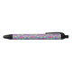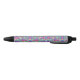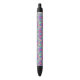 A pen with a black tip and clip, featuring a colorful design that resembles stained glass with vivid pink, blue, and green geometric patterns. The pen is shown with both front and bottom views against a plain white background, highlighting its vibrant decorative surface.
