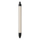 A pen with a textured beige body and black accents shown from front and side views. The sleek design conveys simplicity and functionality.