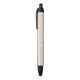 A pen with a textured beige body and black accents
