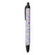 A pen with a vibrant floral pattern on its barrel displayed from the front and bottom angles. The pen features black accents and a click mechanism.