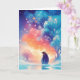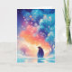 A majestic emperor penguin stands gracefully on a frozen landscape, surrounded by an enchanting dreamlike forest bathed in vibrant hues of blue, pink, and orange. The sky above is filled with glowing orbs of light, creating a magical, starry atmosphere. The scene blends fantasy and nature, with the trees resembling cotton candy clouds, evoking a sense of wonder and tranquillity. This breathtaking winter landscape with a serene penguin is perfect for those who love nature, wildlife, and surreal beauty.