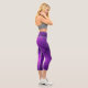 A person wearing purple geometric-patterned capri leggings