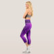 A person wearing purple geometric-patterned leggings and white sneakers stands against a plain background, highlighting the vibrant, modern design.