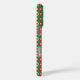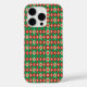 A phone case featuring a vibrant geometric pattern of red, green, and white diamonds and triangles. The design feels festive and lively.