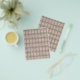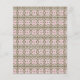 The design shows a pattern with repeated geometric and floral designs. It features shapes like diamonds and circles, along with floral and leaf embellishments. The colours in the pattern include shades of pink, brown, white, and green. This type of design is often used in fabrics or wallpapers for decorative purposes.