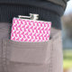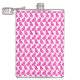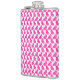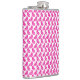 The design appears to be a repeating pattern consisting of a pink and white colour scheme. The pattern features an array of abstract shapes that resemble paisley designs, commonly found in textiles. Each individual shape is pink with a white outline and contains smaller white decorative elements inside. These shapes are arranged in a diagonal orientation, creating rows that alternate direction, which adds to the visual interest of the pattern. This type of design is often used in fabrics or wallpapers and is interesting due to its intricate details and the way the shapes interlock to form a continuous, flowing design.