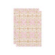 The design features a repeating pattern with floral and geometric elements. The main components include stylised flowers with eight petals, circular shapes that resemble smaller flowers or dots, and interconnected looping lines forming a lattice-like structure. The colour scheme includes shades of pink, white, and brown on a beige background. This symmetrical and harmonious design is ideal for decorative purposes such as wallpaper or textiles.