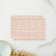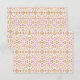 The design features a repeating pattern with floral and geometric elements. The main components include stylised flowers with eight petals, circular shapes that resemble smaller flowers or dots, and interconnected looping lines forming a lattice-like structure. The colour scheme includes shades of pink, white, and brown on a beige background. This symmetrical and harmonious design is ideal for decorative purposes such as wallpaper or textiles.