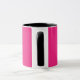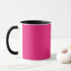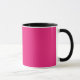 a pink background with a black border mug