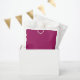 a pink background with a white favour bags
