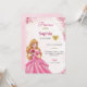 A pink princess-themed birthday invitation for Sophia's 5th birthday. The card shows a princess in a pink dress with floral accents.