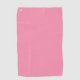 A pink towel with a textured pattern is shown against a neutral background. It has a small gold ring in the top left corner for hanging.