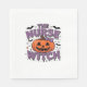 A playful design featuring a pumpkin witch with a napkin