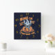 A playful ghost overthinking by a carved pumpkin square wall clock
