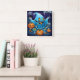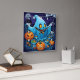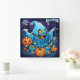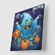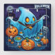 A playful Halloween ghost with pumpkins at night Square Wall Clock