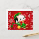 The scene is filled with cheerful holiday decorations, including snowflakes and a vibrant poinsettia.
