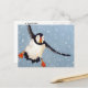 A little snow and a playful Puffin means a lot of fun for the joyous creature! If either flying through the air or through water, it is sure to get everyone's attention. From a painting by Gay Perry.