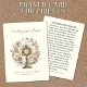 Featuring a beautiful vintage image of a a gold monstrance with the Eucharist overlaid on a floral wreath bouquet. On the back is a beautiful prayer for priests.