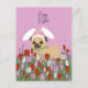 A pug with bunny ears in a field of tulips Easter Holiday Postcard