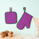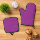 a purple background with a white border oven mitt & pot holder set