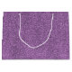 A purple glitter gift bag with a white handle