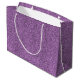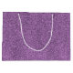 a rectangular purple glitter gift bag with a white handle and two holes punched at the top for a strap, angled to the right on a white background