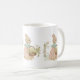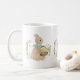 a rabbit in a dress with a basket of flowers coffee mug