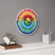 Add a splash of positivity and vibrant colour to any space with this wall clock featuring concentric circles in bright rainbow hues. The bold design radiates energy and joy, while a custom inspirational quote elegantly wraps around the circumference, offering motivation at every glance.