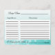 A fancy classic modern Bright teal bokeh gradient faded Wedding Recipe card for the Bride to be. Stick these cute recipe cards into the wedding invitation or Save the Dates for your friends and family to fill out and return with the RSVP or at the wedding.ue