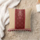 a red and beige carpet with a red border cushion