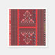 Top Section: It has a red background with black and white vertical stripes, interspersed with intricate patterns that resemble traditional or tribal designs.