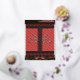 a red and black pattern with flowers on it foil holiday postcard