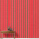 This design features a repeating pattern of red vertical stripes with intricate white floral designs inside them. The stripes are separated by thin green lines, adding contrast to the overall design.