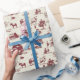 A Red & Cream Toile Country Farm Animal Scene Wrapping Paper