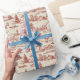 A Red & Cream Toile Of A Country Cow Farm Scene Wrapping Paper