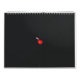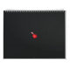 The design features a stylised graphic of a red flower with a brown centre. Above the flower, there’s a black dot connected by a curved pink line, suggesting motion, as if the dot is being flung away from the flower. This design could symbolise growth, change, or movement.