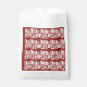 A red rug with a textured pattern is spread out on favour bags