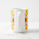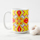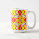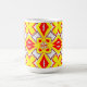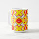 Mug, A vibrant red, Yellow and white colour classic pattern design. Coffee mug is a sturdy, often cup used primarily for serving hot beverages like coffee, tea, or hot chocolate. Its durable build allows it to retain heat, making it ideal for sipping. In addition to drinking, coffee mugs are often used for gifting, displaying creativity.