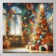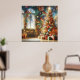 A Retro Style Christmas Tree With Presents on Wall Poster