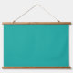 A rich teal green area highlighted by a contrastin hanging tapestry