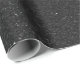 a roll of black granite contact paper with a speckled texture, curled at one end to reveal a silver underside, on a white background