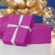 a roll of pink wrapping paper with a glittery texture, partially unrolled to reveal the rolled edge on the left side