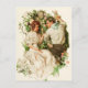Vintage illustration of a young lady and man, possibly the gardener, in a rose garden. Illustration by Howard Chandler Christy.