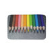 A row of pointy well sharpened coloured pencils sitting on a grey granite desk. A nice spectrum of colours from the rainbow. Ready to inspire ones imagination and creativity with drawing and colouring.